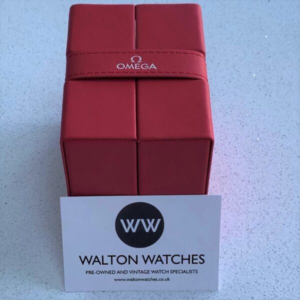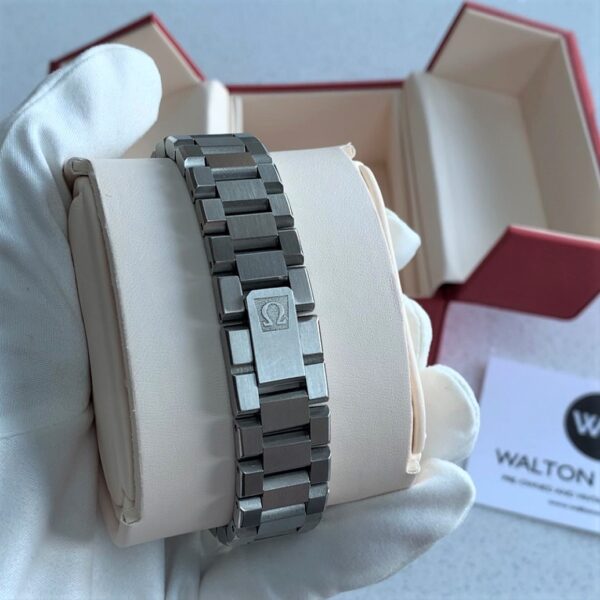A super cool 1979 Omega Seamaster Ref 166.0251 on original Omega Seamaster bracelet. The Omega Seamaster Ref 166.0251 is the rarest version of the Seamaster 120 series and is often referred to as a ‘Baby Ploprof’ as it has the same hands as the larger Omega Seamaster Ploprof. It has a barrel shaped steel case with circular satin brushed case middle with lateral bevels, screw down case back and crown. With date, luminous black dial, stunning orange minute hand and unidirectional rotating bezel with Bakelite insert and 0-60 markings, this is an absolute stunner of a watch in superb vintage condition!